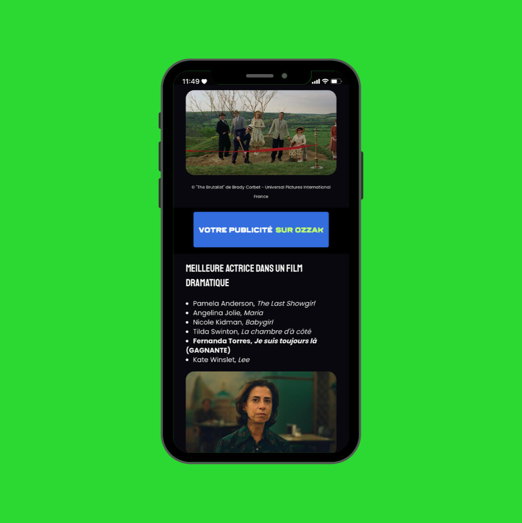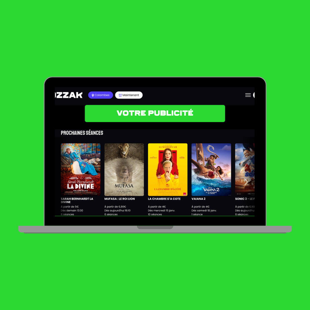 L'offre display OZZAK vous donne l'opportunité de toucher une audience qualifiée, intentionniste et très affinitaire avec le cinéma.Des formats display multiplateformes pour une visibilité 360 - Web, IOS et Android.
